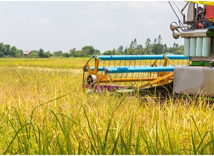 • 拖拉機(jī)和收割機(jī)在農(nóng)場收大米